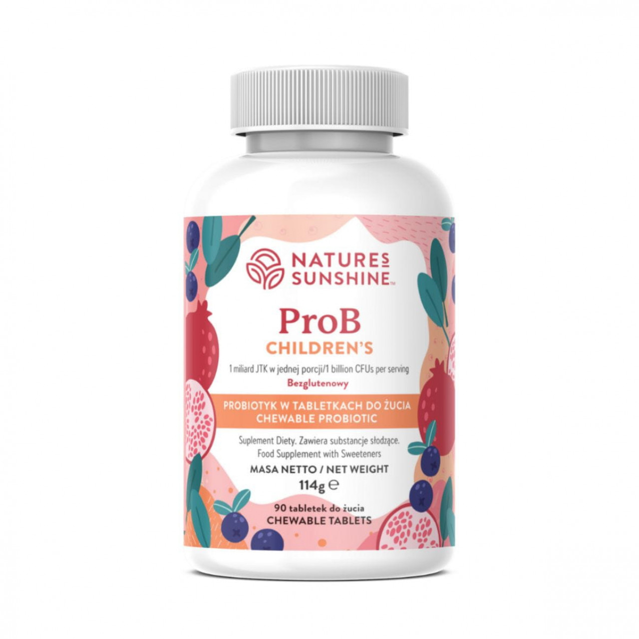ProB Children’s er et kosttilskud i form af tyggetabletter med probiotika, specielt udviklet til børn. Hver portion indeholder 1 milliard levende mælkesyrebakterier fra 11 udvalgte stammer samt den unikke blanding af plante- og frugtkomponenter Protector Shield. Det er et velsmagende og værdifuldt supplement til kosten, som børn opfatter som en godbid, og som forældre ser som en tryg støtte til barnets sundhed.